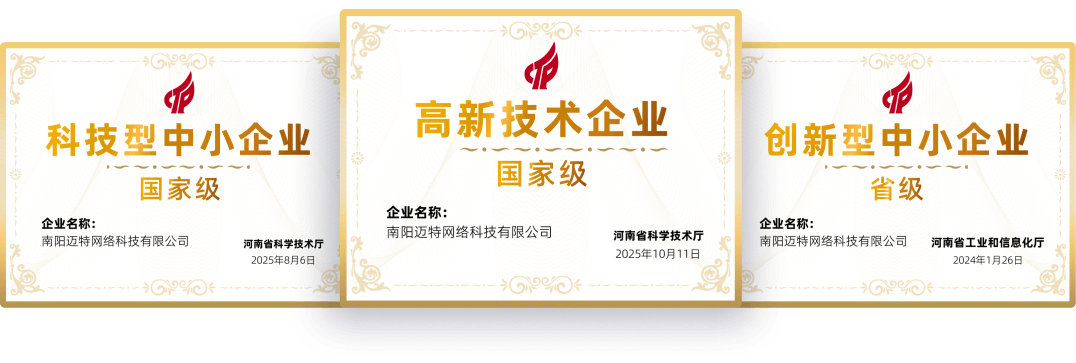 您值得信赖的短剧技术伙伴!迈特科技已集齐创新型中小企业、科技型中小企业、高新技术企业三项认证。这意味着,您与我们合作,不仅是在选择领先的技术工具,更是选择了一个经过国家认证、安全可靠、持续创新的战略伙伴。我们致力于将硬核技术转化为您的增长动能,共同开拓短剧新蓝海。