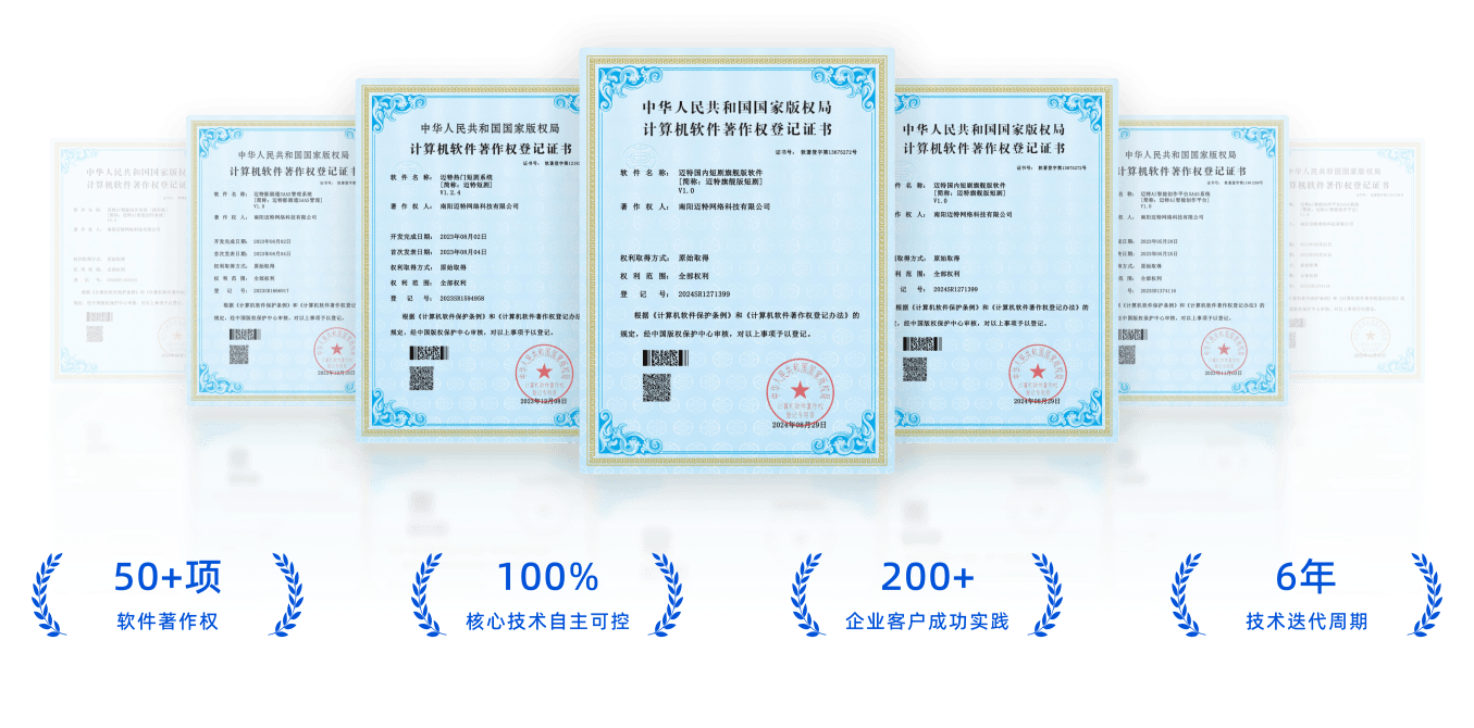 迈特科技旗下全系列产品均已完成国家版权局软件著作权登记。这不仅是我们强大自主研发能力的证明,更是对客户投资安全与业务合规性的坚实承诺。 选择迈特,即是选择安全、可靠与持续创新的技术后盾。